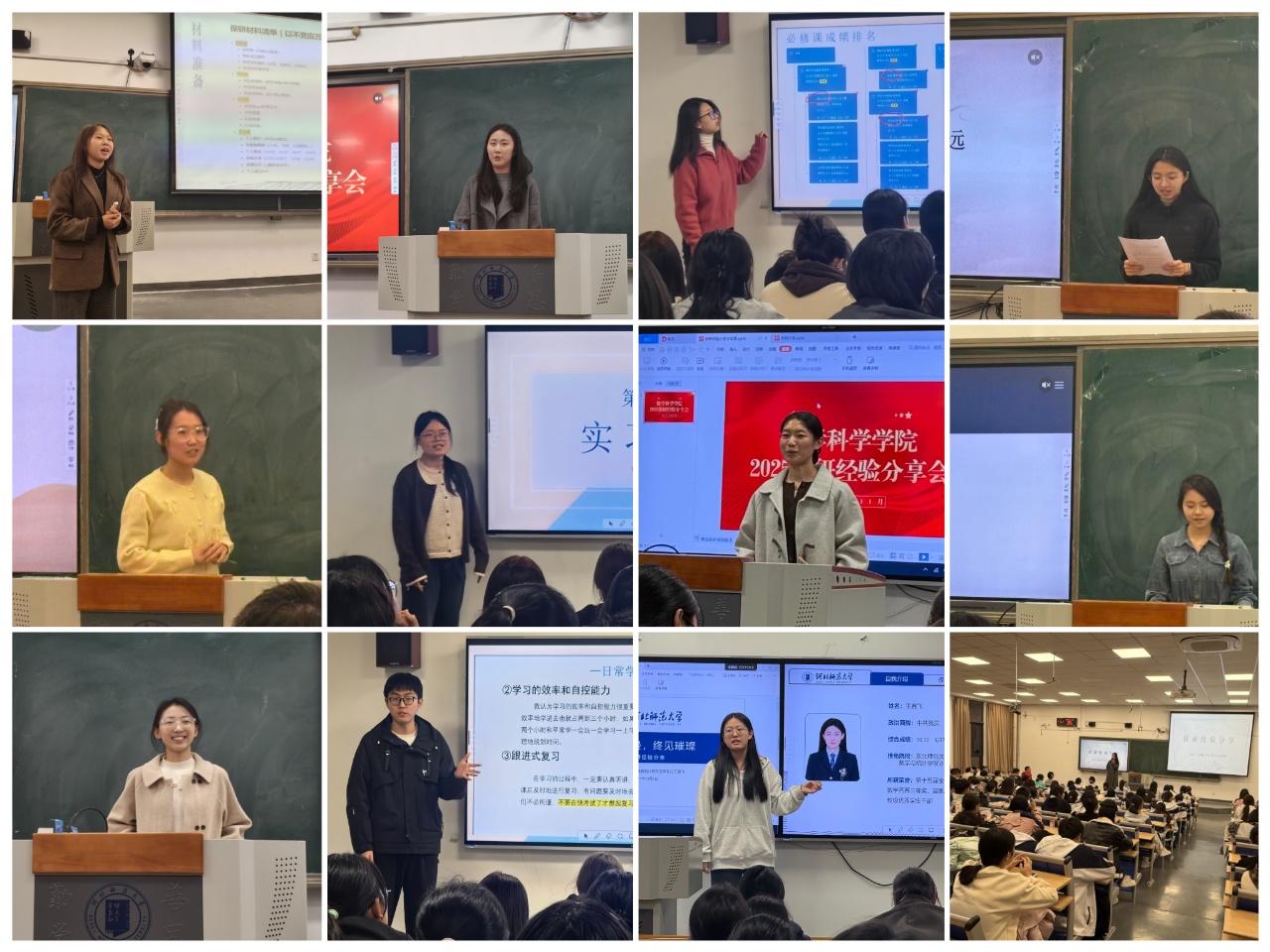 学院邀请了推免至南开大学、华中师范大学、东北师范大学、首都师范大学等高校的11名2022级优秀学子进行交流,他们结合自身经历,从学习方法、实习经历、学科竞赛心得等多角度展开分享,帮助2025级学生认清当下形势,理清奋斗目标。他们嘱咐大一新生认真对待每一门课程,并有针对性的给学弟学妹们推荐专业书目和学习资料网站。优秀学生代表们知无不言、倾情讲解,为同学们提出很多实用的建议。