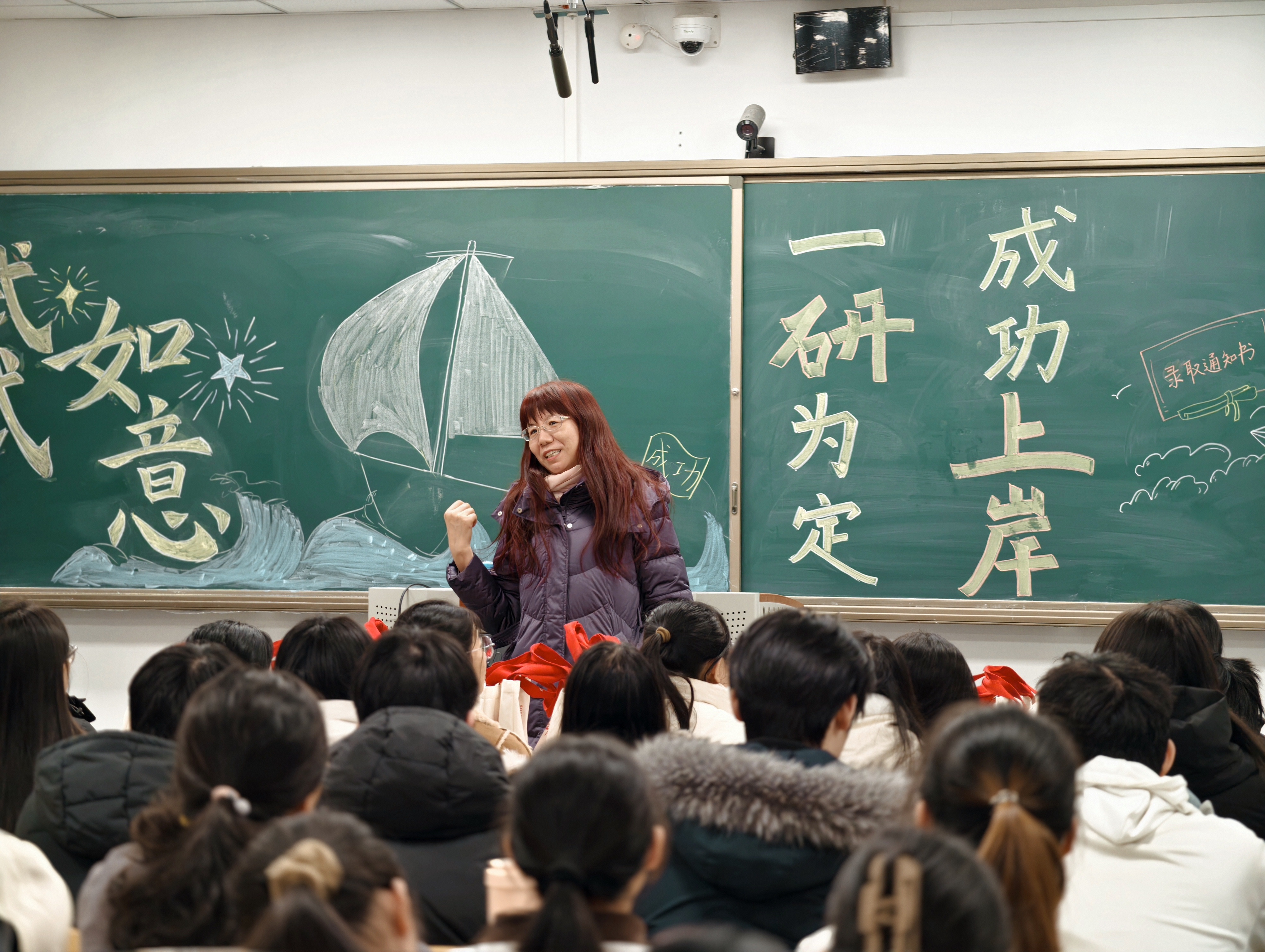 院长苑立平深情寄语考研学子,鼓励同学们坚定信念,在最后冲刺阶段全力以赴追逐梦想,指导大家科学规划复习重点,合理安排学习时间,劳逸结合,健康饮食,调整心态,以最佳状态迎接考试。老师们与考研学子亲切交流,叮嘱大家保重身体,轻松应考,还贴心地为大家送上了寓意“前程似锦”的考研礼包,让同学们切实感受到学院的关怀,也为大家注入了“一战成硕”的信心与底气。