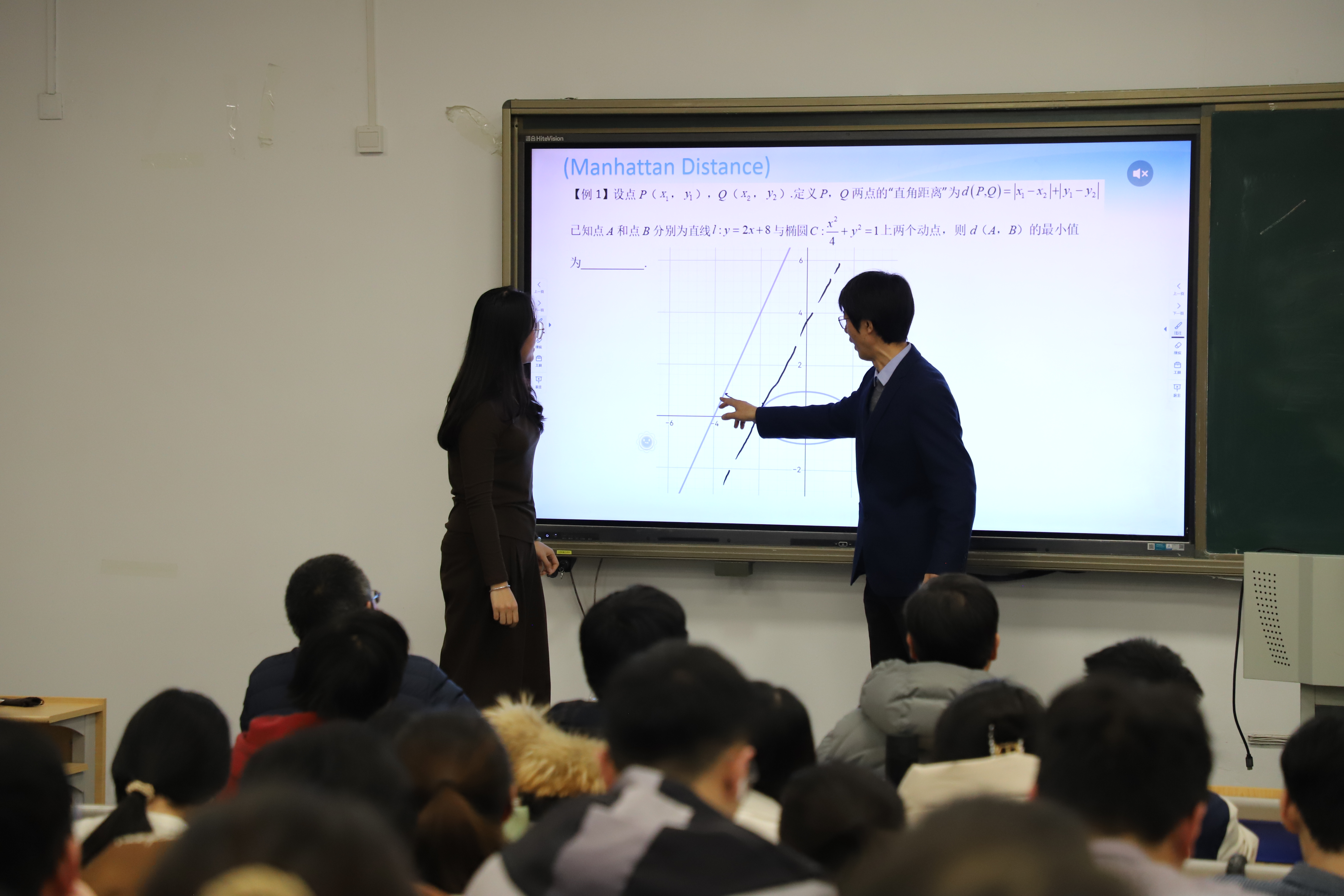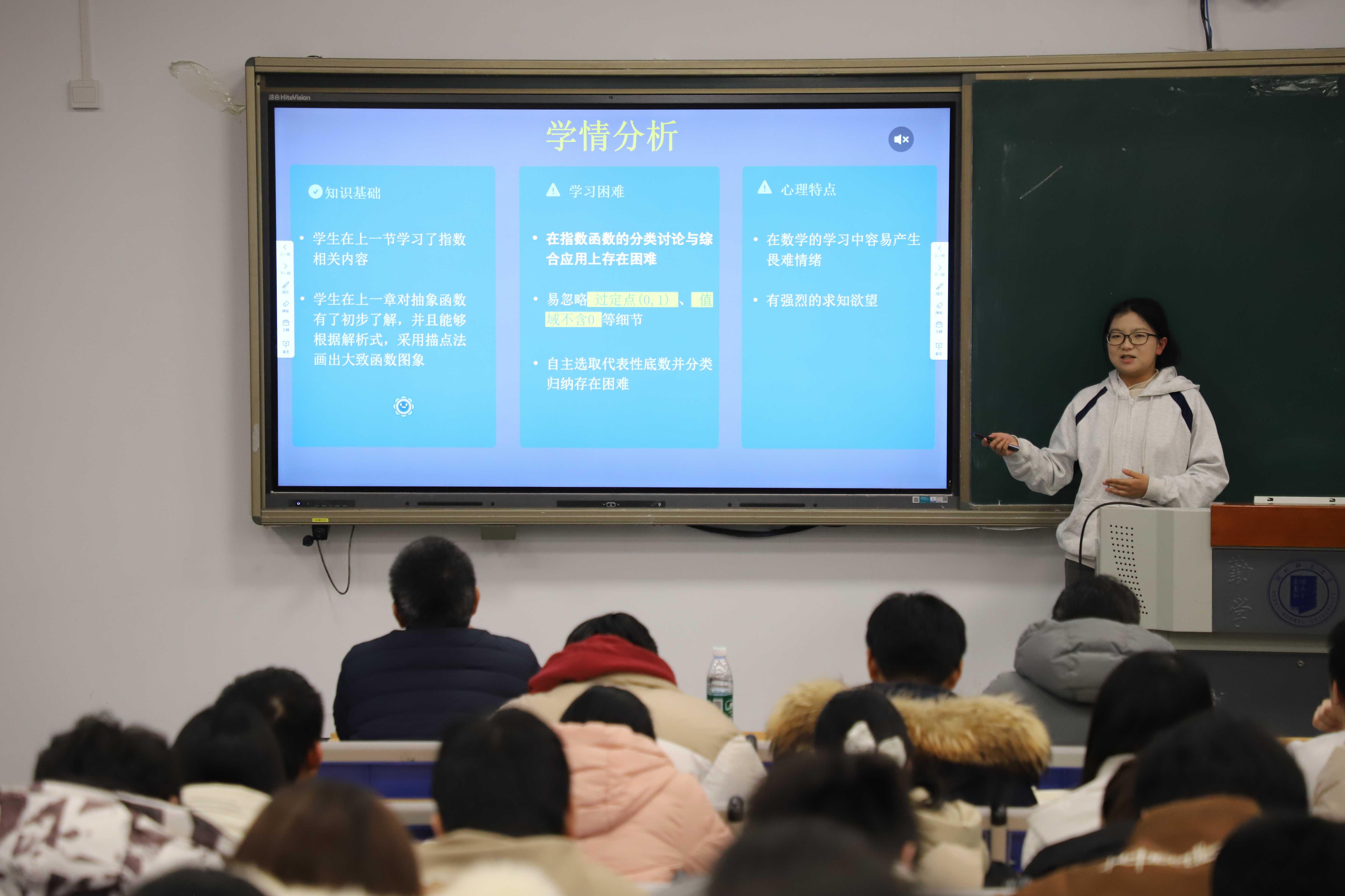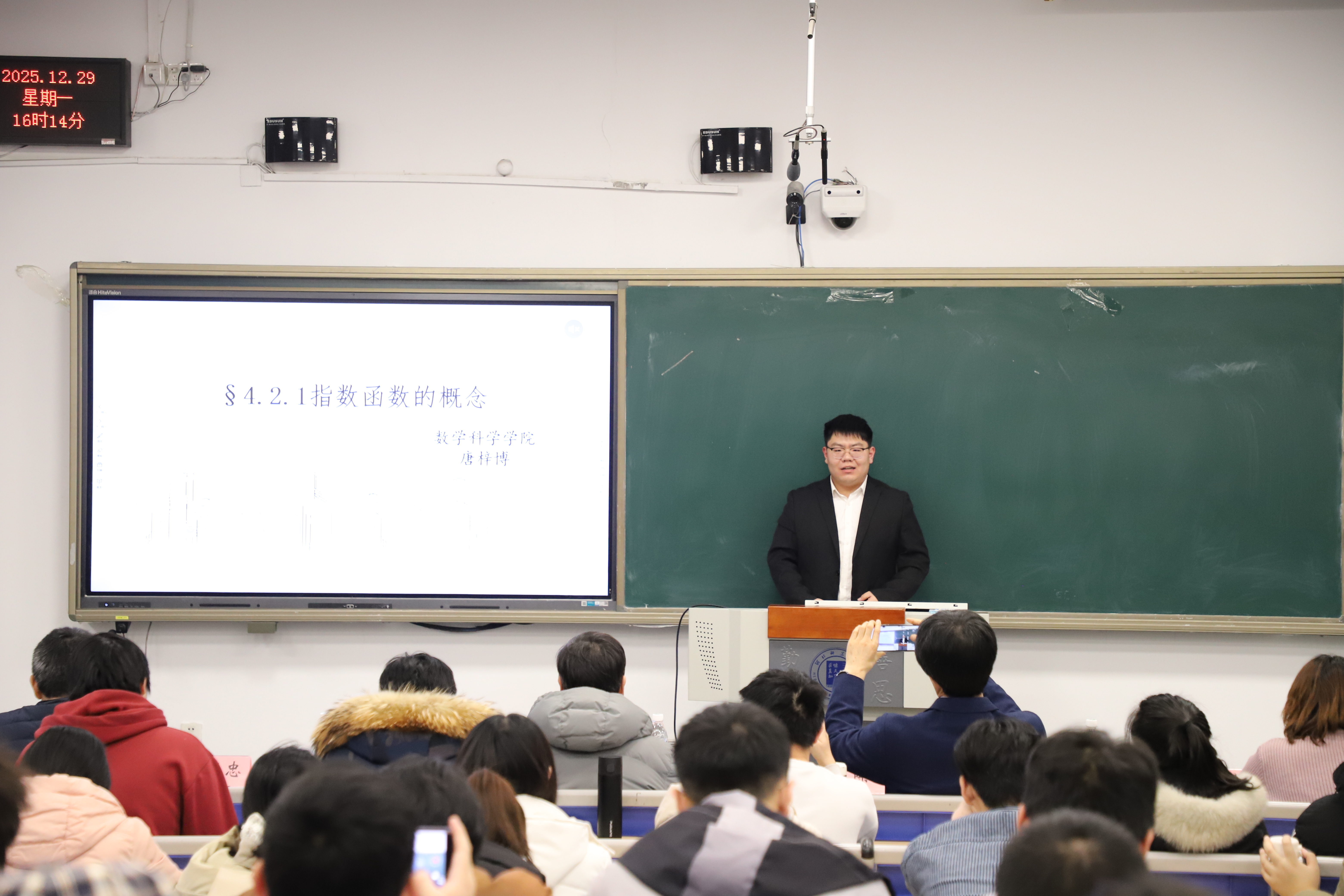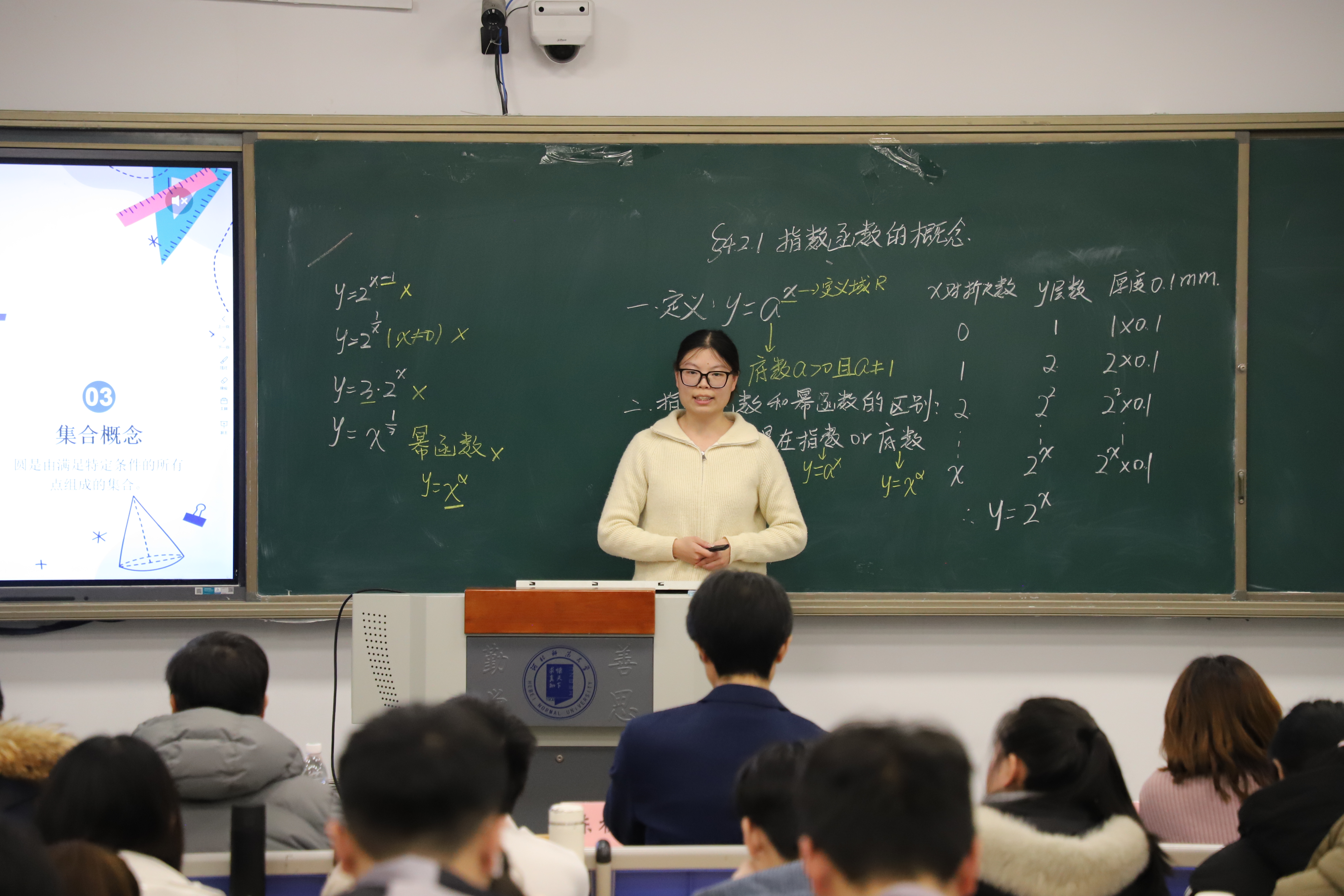 随后,陈桂虎老师为同学们现场讲授了一节高中数学课,巧妙的课堂导入、轻松的课堂互动、精彩的内容讲授,为即将参加实习工作的同学们呈现了一堂生动鲜活的教学示范课。活动现场,与会老师还为参加学院教师技能大赛获奖同学颁发了荣誉证书。